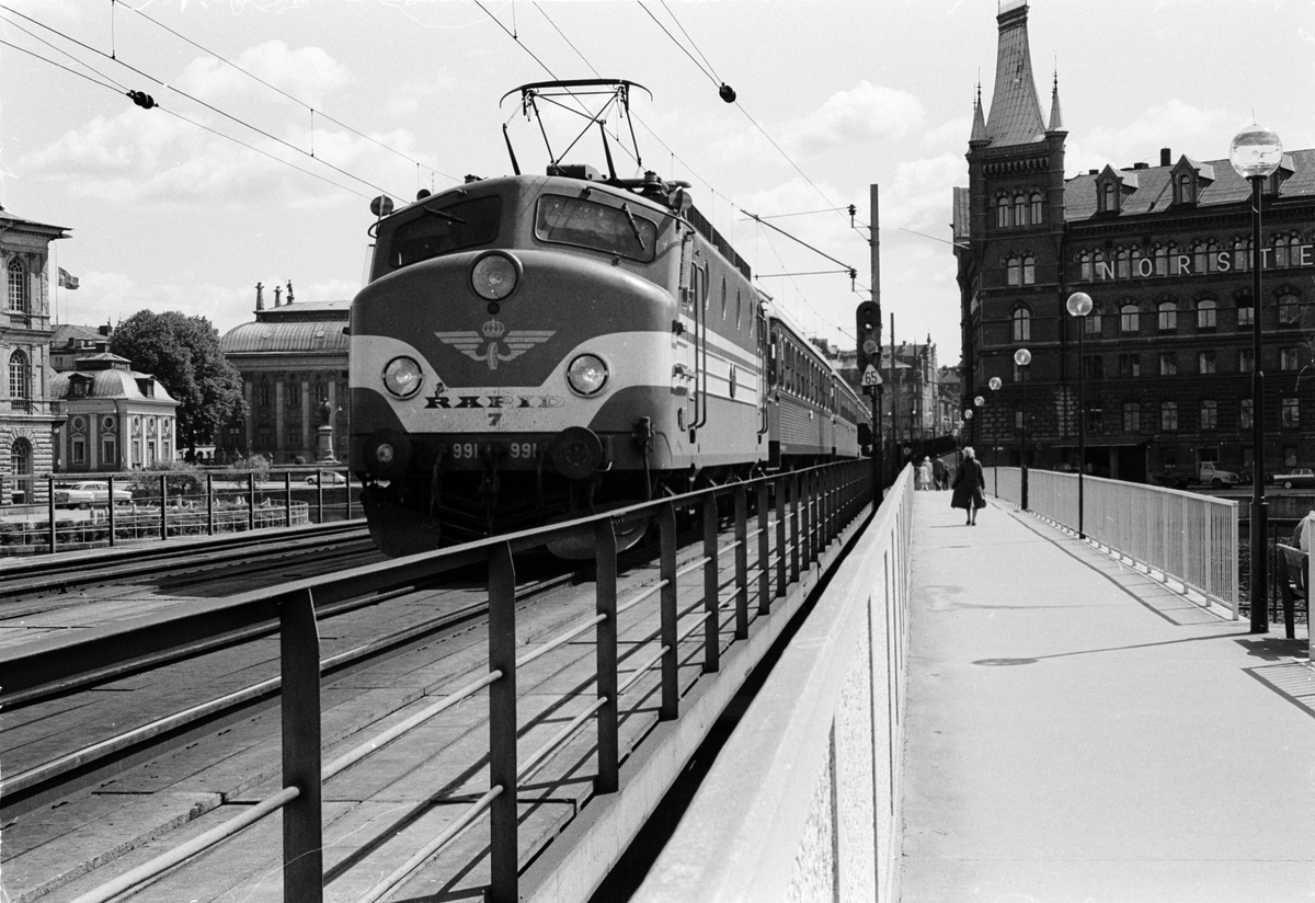 Statens järnvägar SJ Ra 991 "Rapid 7", på Riddarholmsbron, på sträckan mellan Riddarholmen och Stockholm Central.