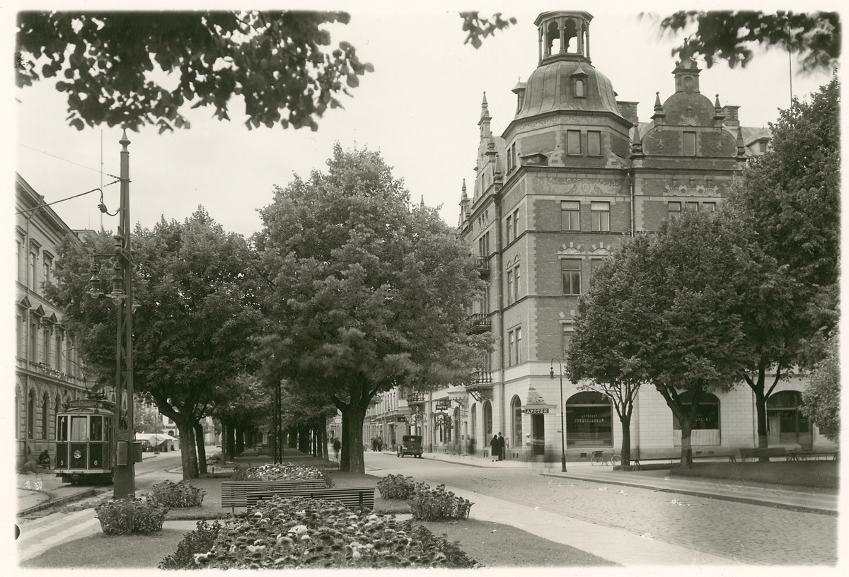 Nygatan i Gävle där vi ser spårvagn 6 rullande.