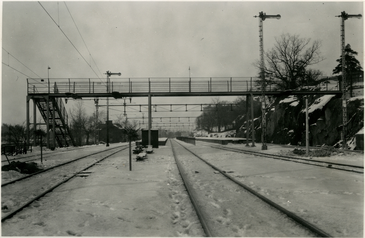 Statens Järnvägar, SJ, Gångbro över banan vid Tomteboda.