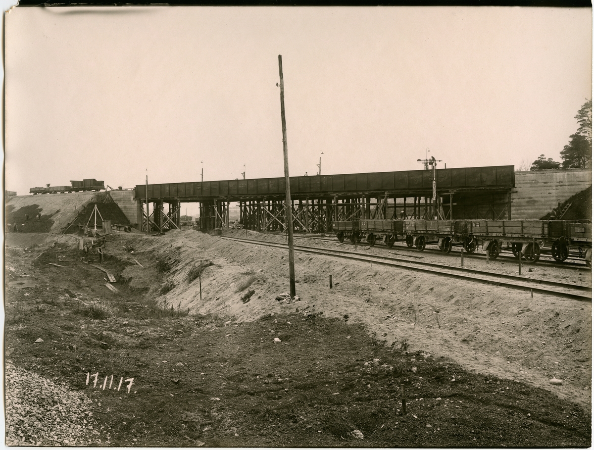 Statens Järnvägar, SJ, Tomteboda - Hagalund, S.W.B. viadukten under byggnad.