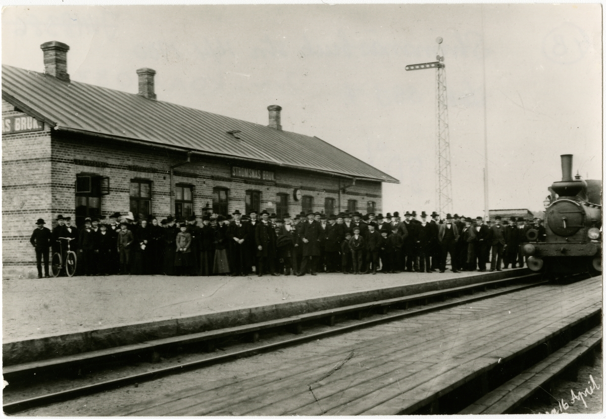 Strömsnäsbruk järnvägsstation. Skåne-Smålands Järnväg, SSJ lok 7.