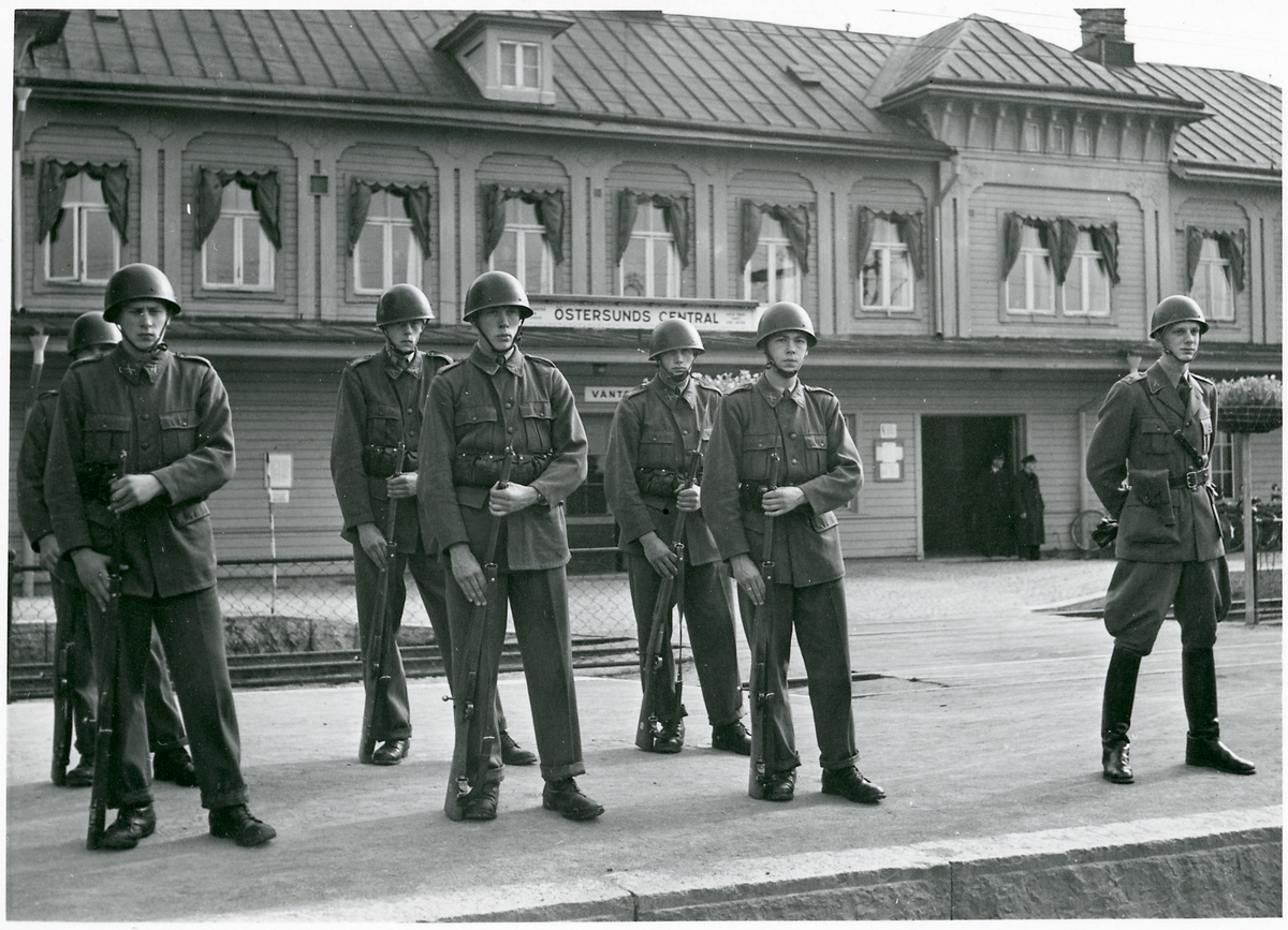 Svensk militär på Östersunds centralstation, under andra världskriget.