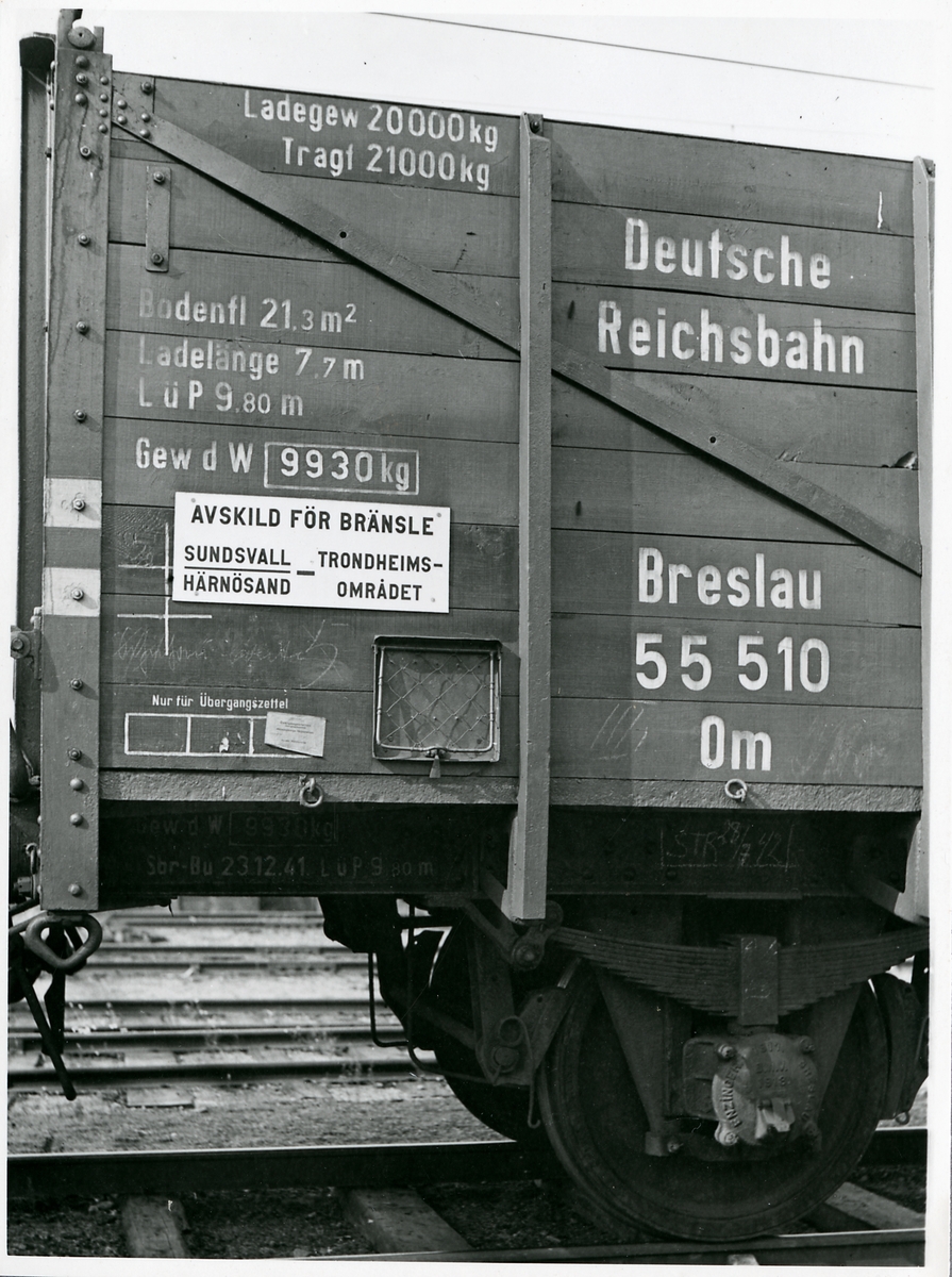 Tyskt militärtåg på väg mot Norge under andra världskriget. Här på Östersunds centralstation.