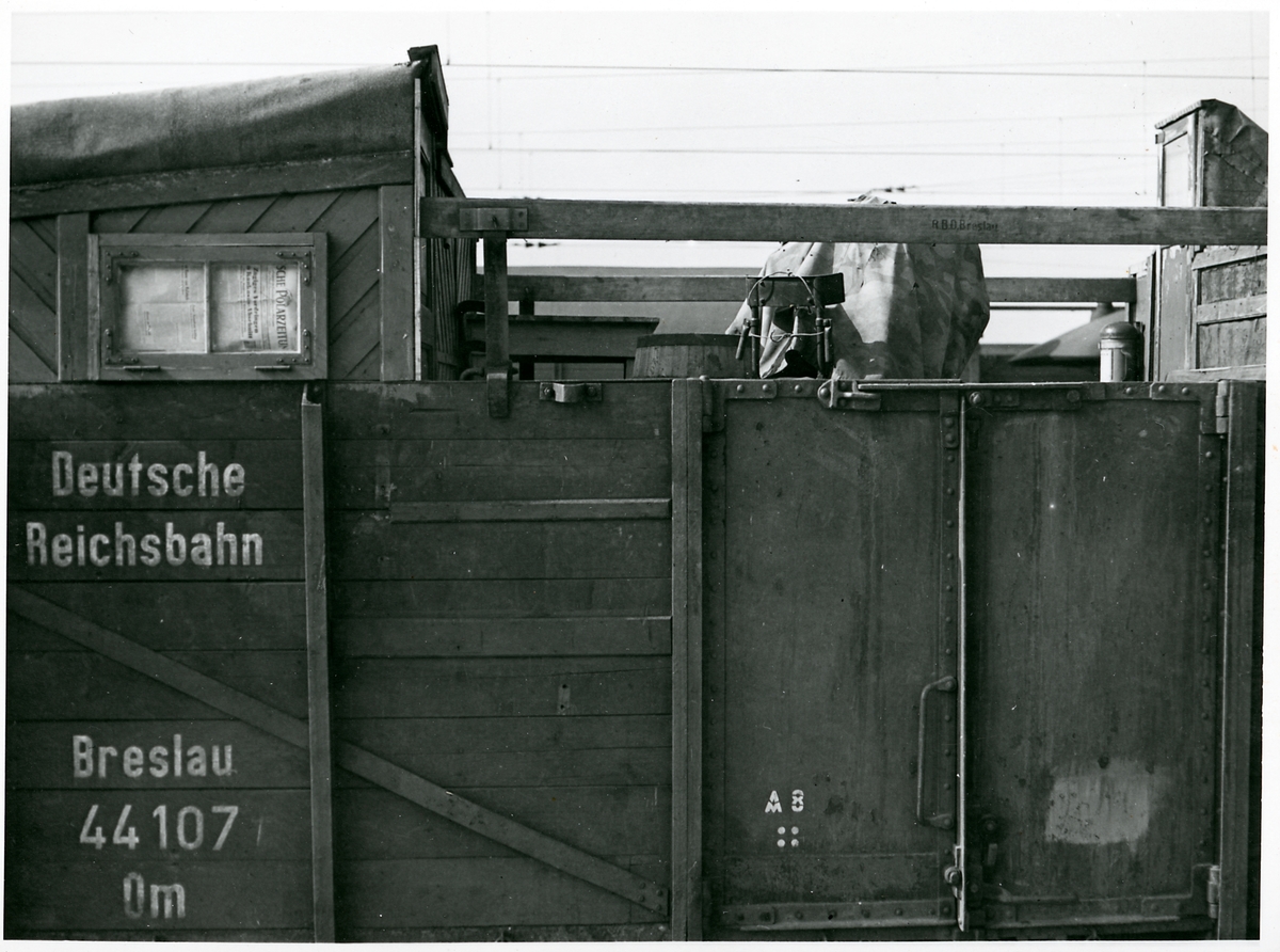 Tyskt militärtåg på väg mot Norge under andra världskriget. Här på Östersunds centralstation.