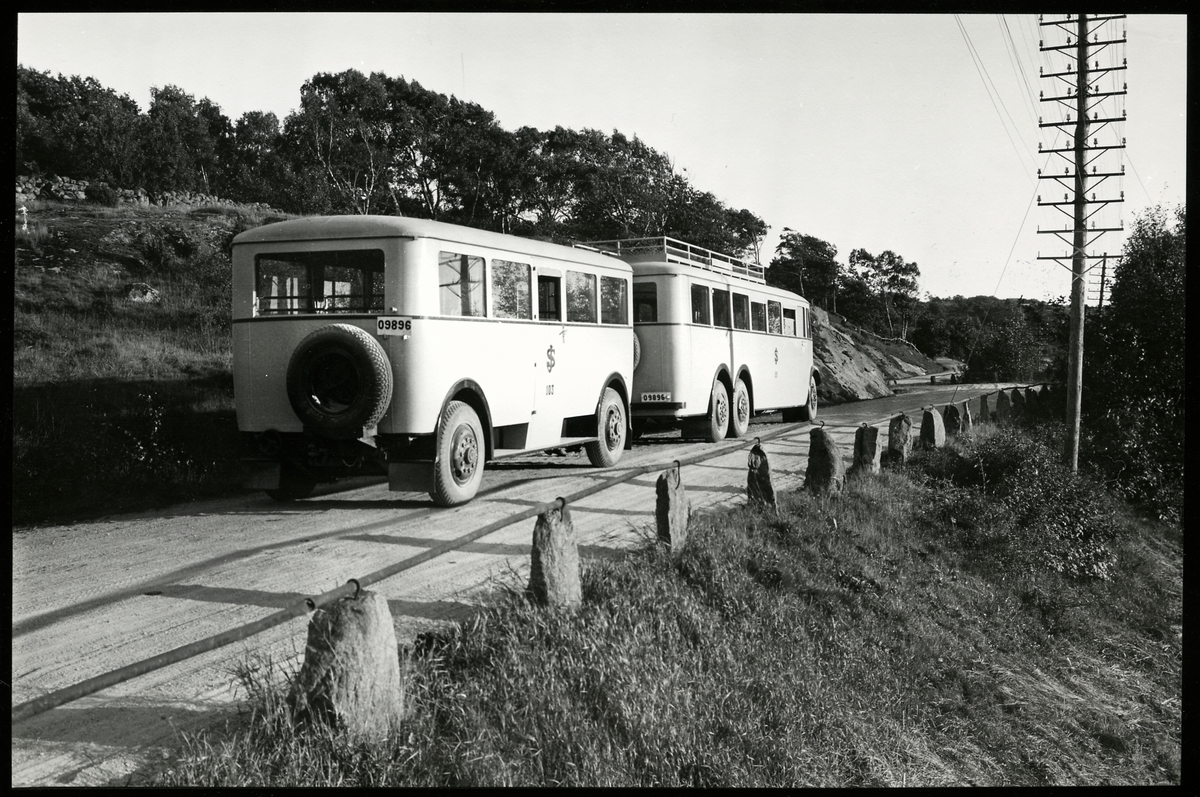 Tidaholm buss med släp. Statens Järnvägar, SJ buss 29 och SJ släp 103.