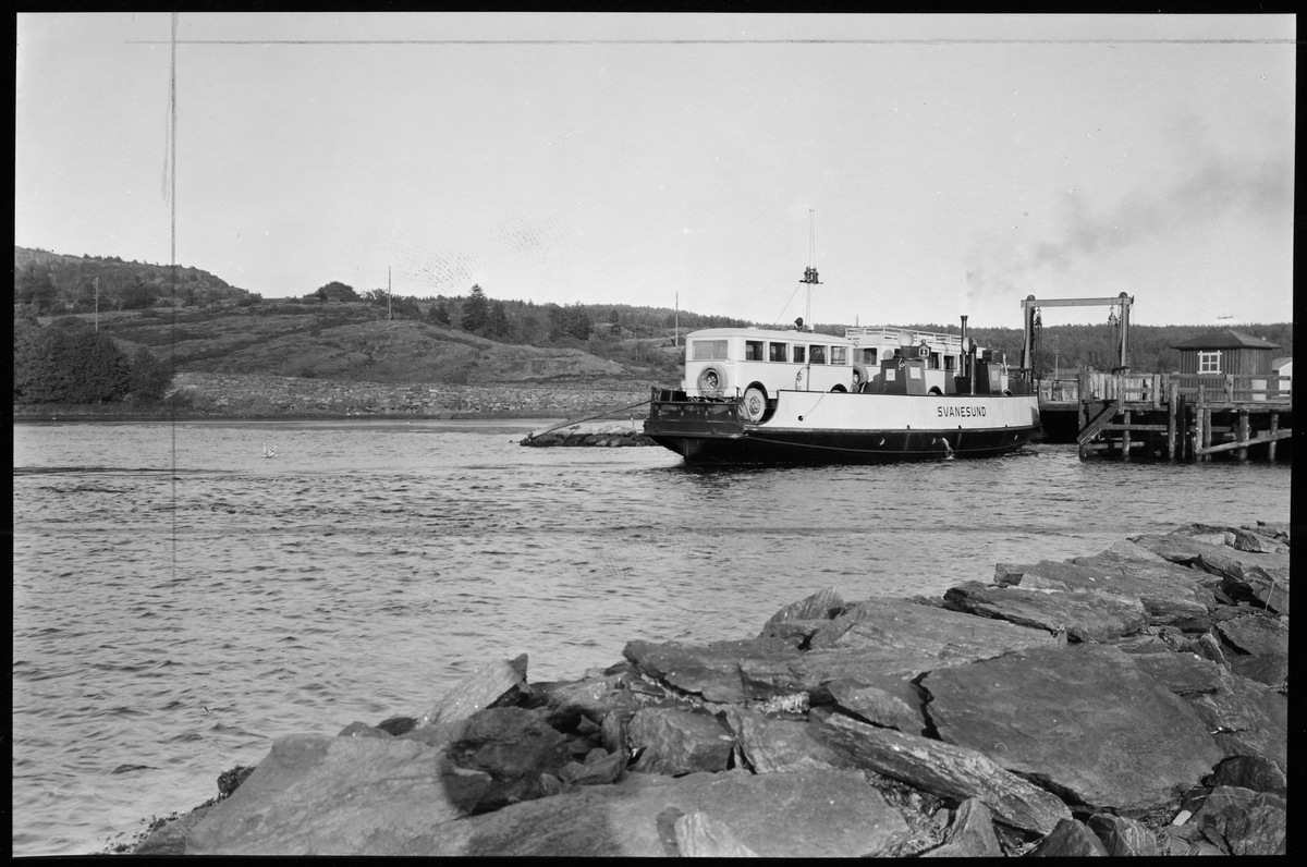 Tidaholm buss med personsläp på Svanesundsfärjan. Statens Järnvägar, SJ.