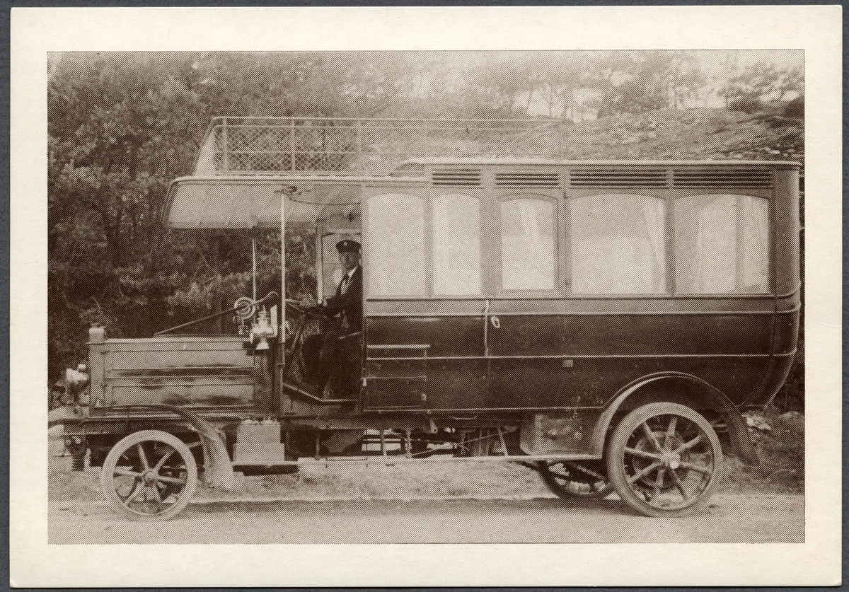 Buss av äldre modell som gick mellan Tanums station och Grebbestad 1911-1915. Premiärturen gick den 22 juni 1911 och kostade 1 krona.