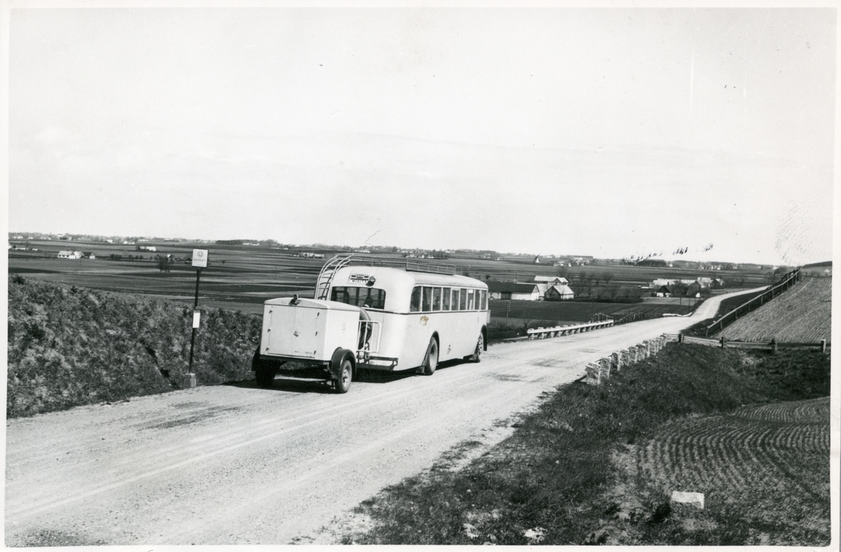 Statens Järnvägar, SJ buss vid en hållplats i skånska Kåseberga.