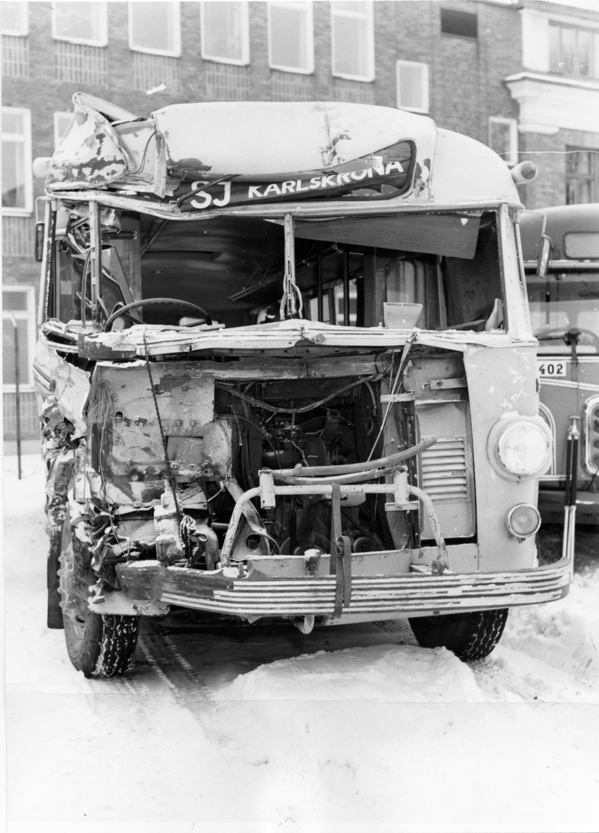 Statens Järnvägar, SJ buss 2138. Krockad Buss SCANIA-VABIS B63.