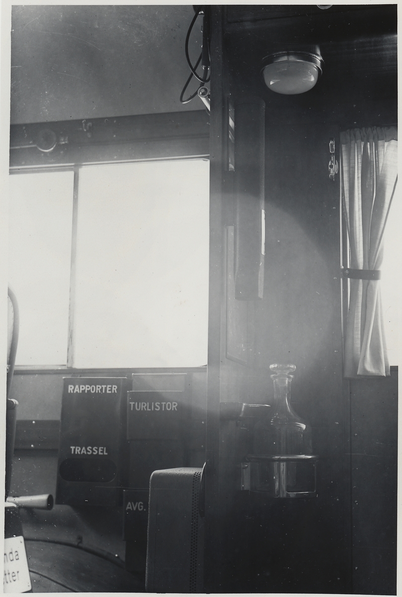 Fack för rapporter, tidtabeller och trassel i en buss.