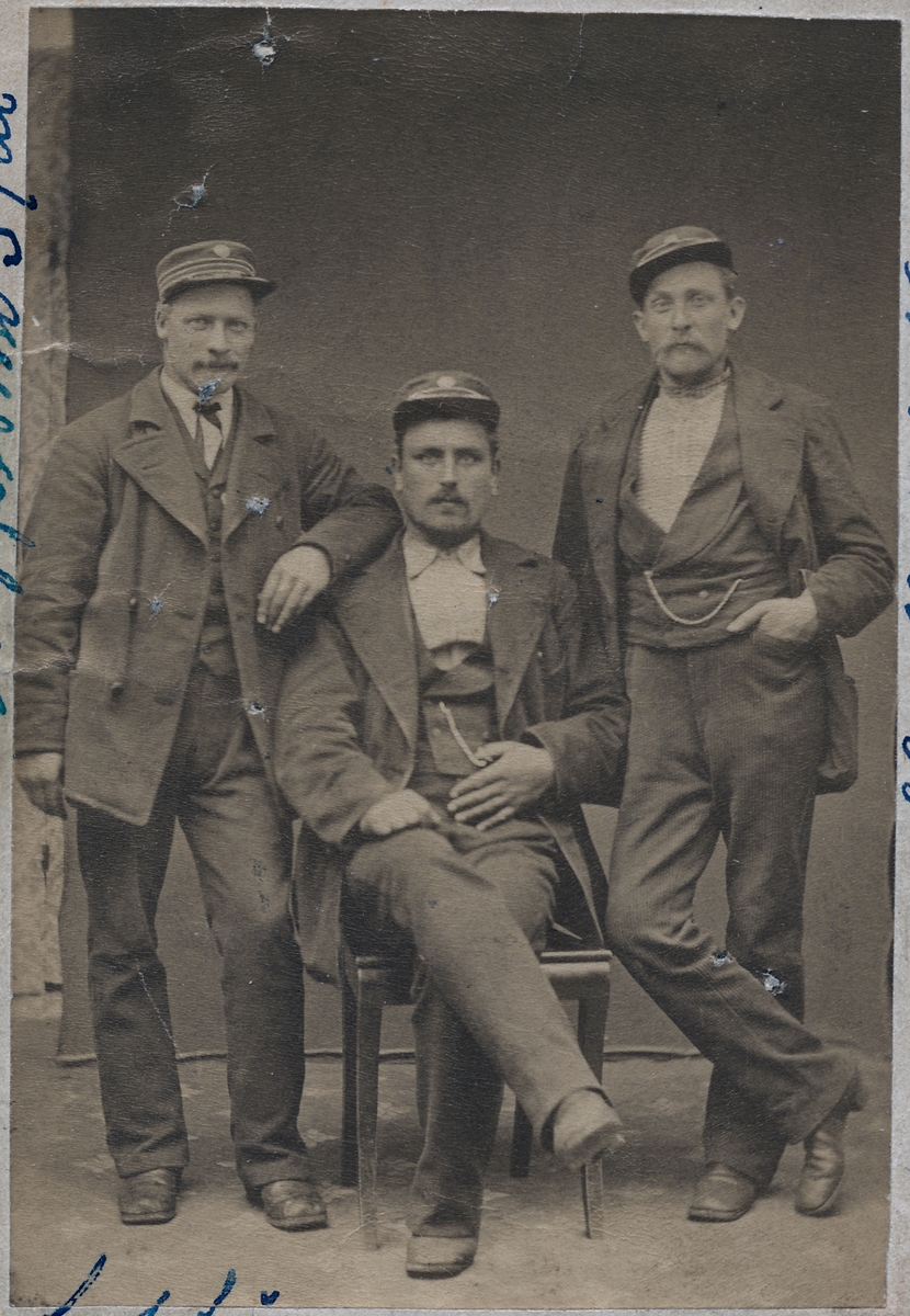 Lokförare vid Norsholm - Västervik - Hultsfred Järnväg. Från vänster W. Häggström, Pettersson och Allander.