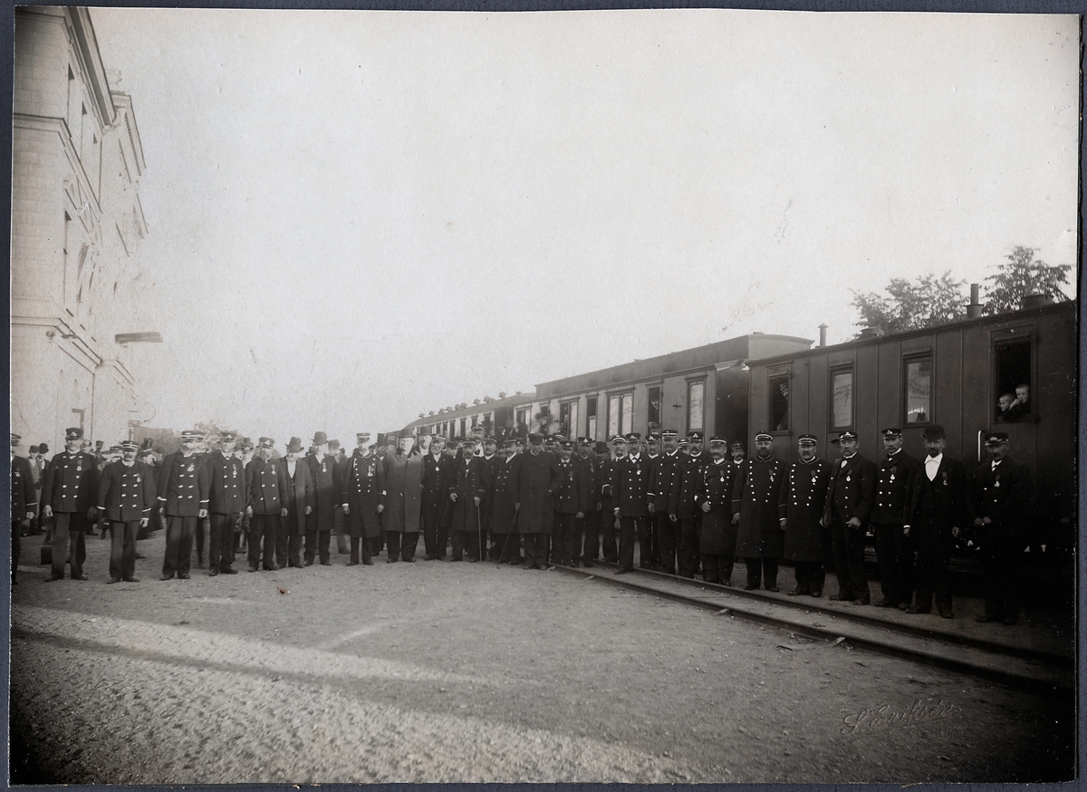 Medaljörer utanför Västerviks station, i samband med 25-års jubileumet av Norsholm - Västervik - Hultsfreds Järnvägar 1904.