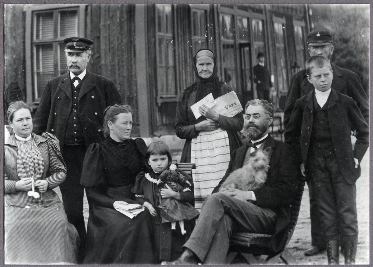 Personal vid Gamleby station. Stins Anders Ohlsson med familj, samt Postmästare Rosin och Banvakt Stark.