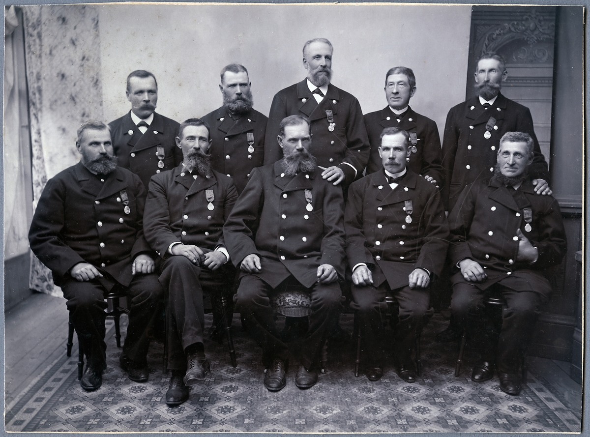 Banmästare samt banvakter från sträckan mellan Västervik och Överum. I samband med 25-års jubileumet av Norsholm - Västervik - Hultsfreds Järnvägar 1904.