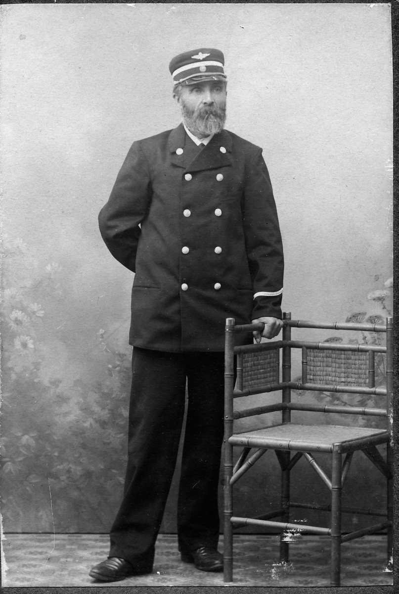 Stationsmästare C. J. Larsson, Totebo. Fotot taget i Hilma Johanssons altejé i Västervik.