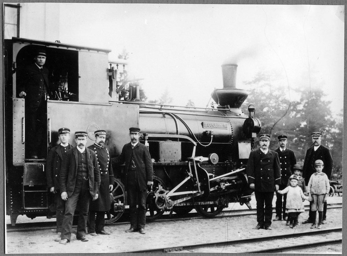 Personal framför ångloket Hultsfred - Västerviks Järnväg, HWJ lok 14 "Tunalän".