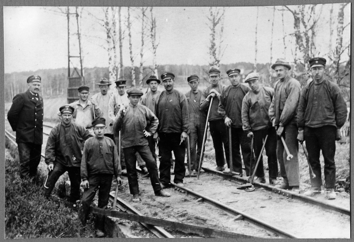 Banavdelningens arbetslag vid rälsbyte i Åtvidaberg.