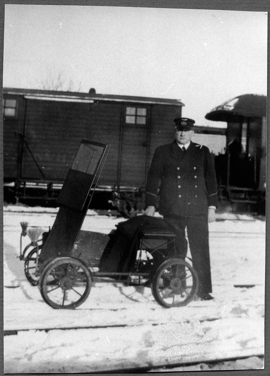 Titel: Överbanmästare Hjalmar Johansson med sin motordressin.