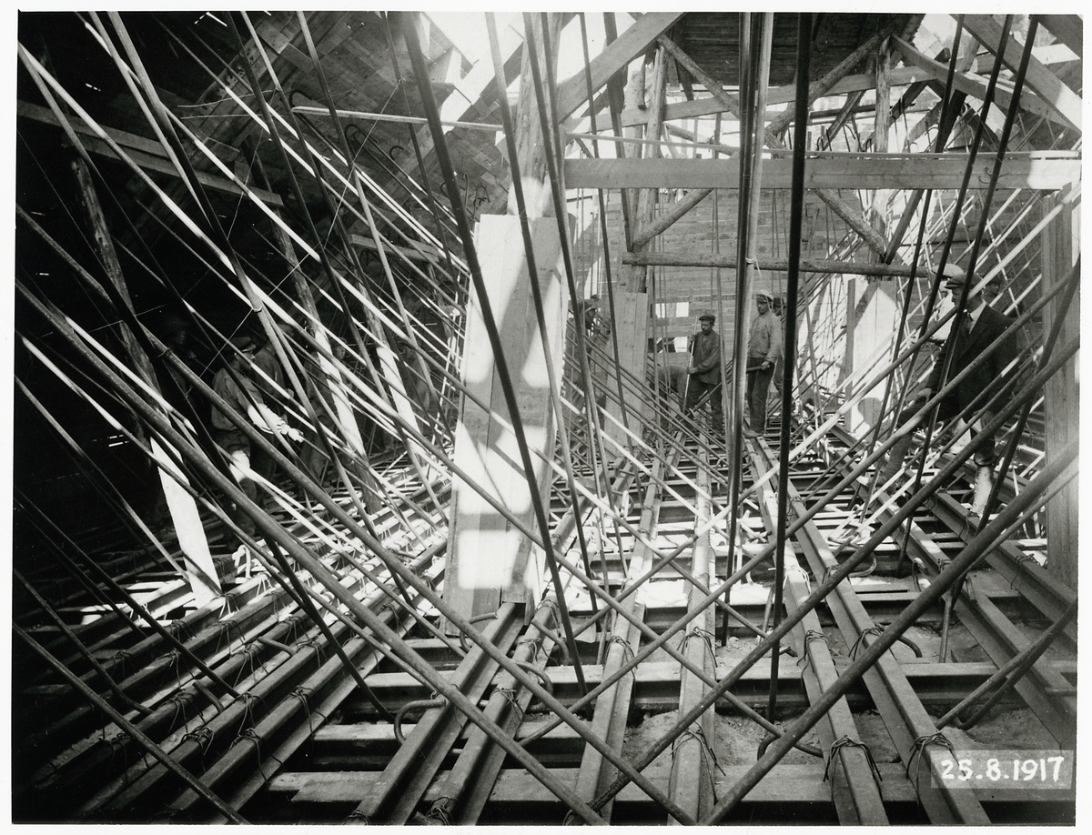 Armering av grundplattan på bågbron (Nyåkersbron) över Öreälven.