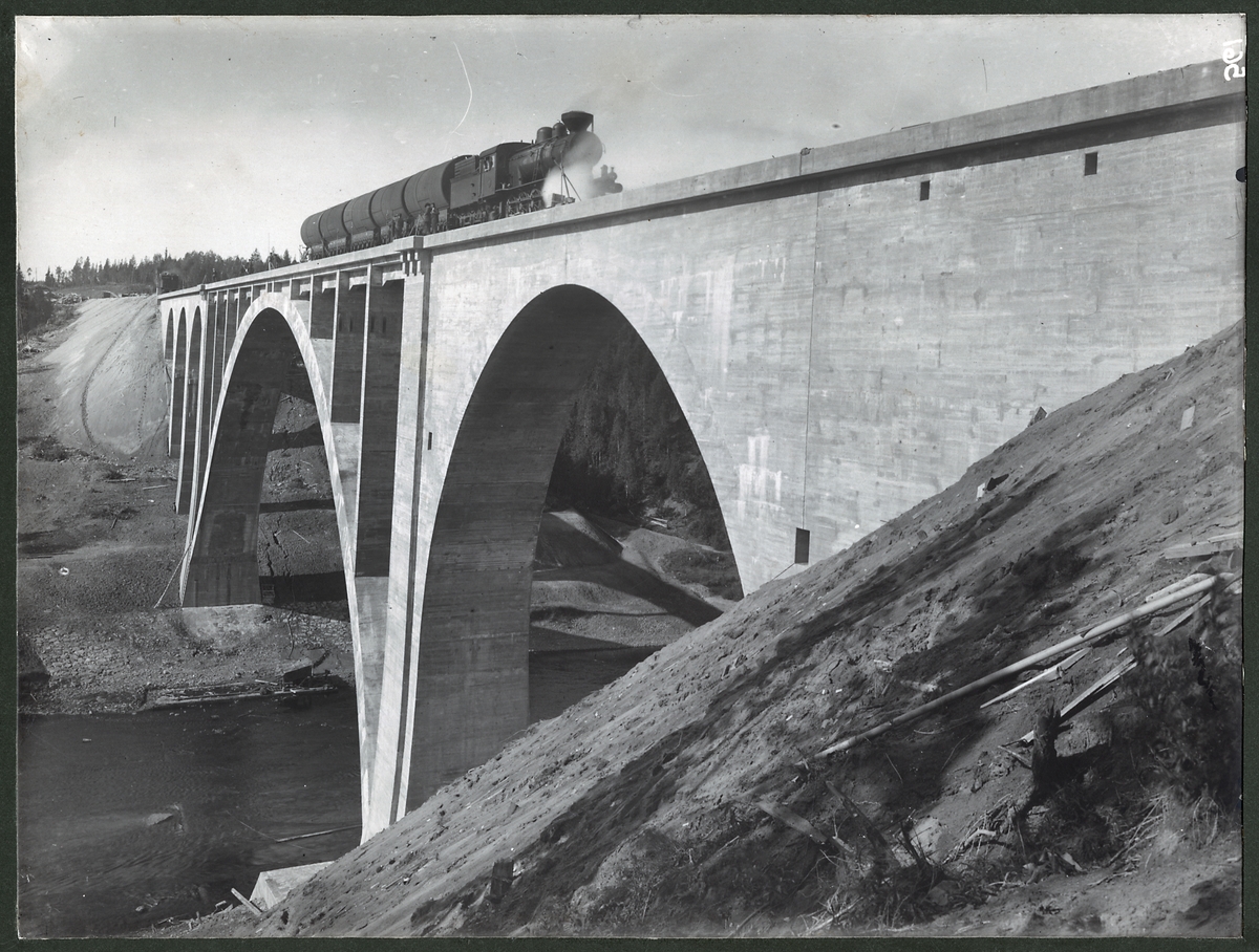 Provbelastningståg på järnvägsbron över Öreälven.