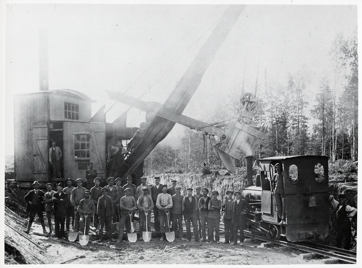 Arbetslag vid uppförandet av bron över Öreälven 1917.