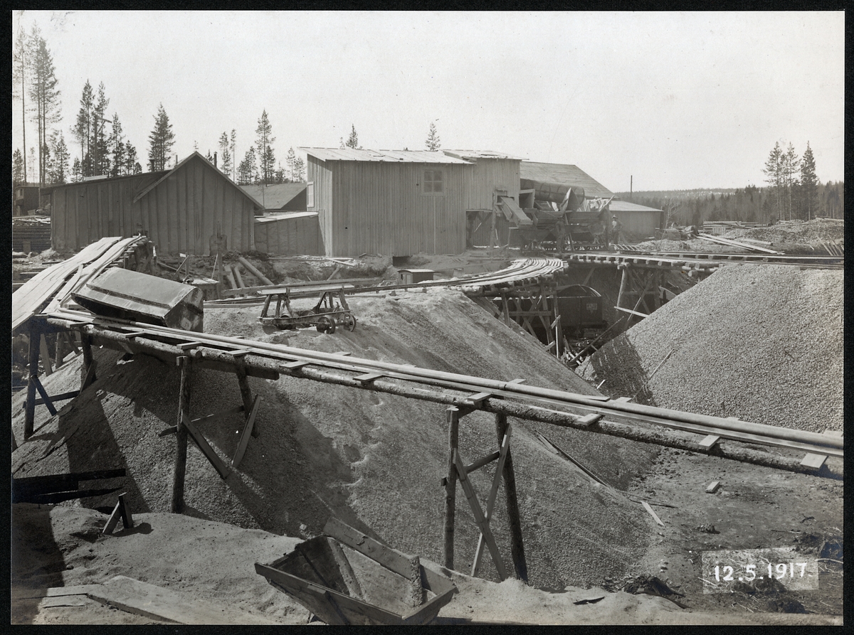 Makadamkrossen med makadamupplag, vid järnvägsbygget över Öreälven.