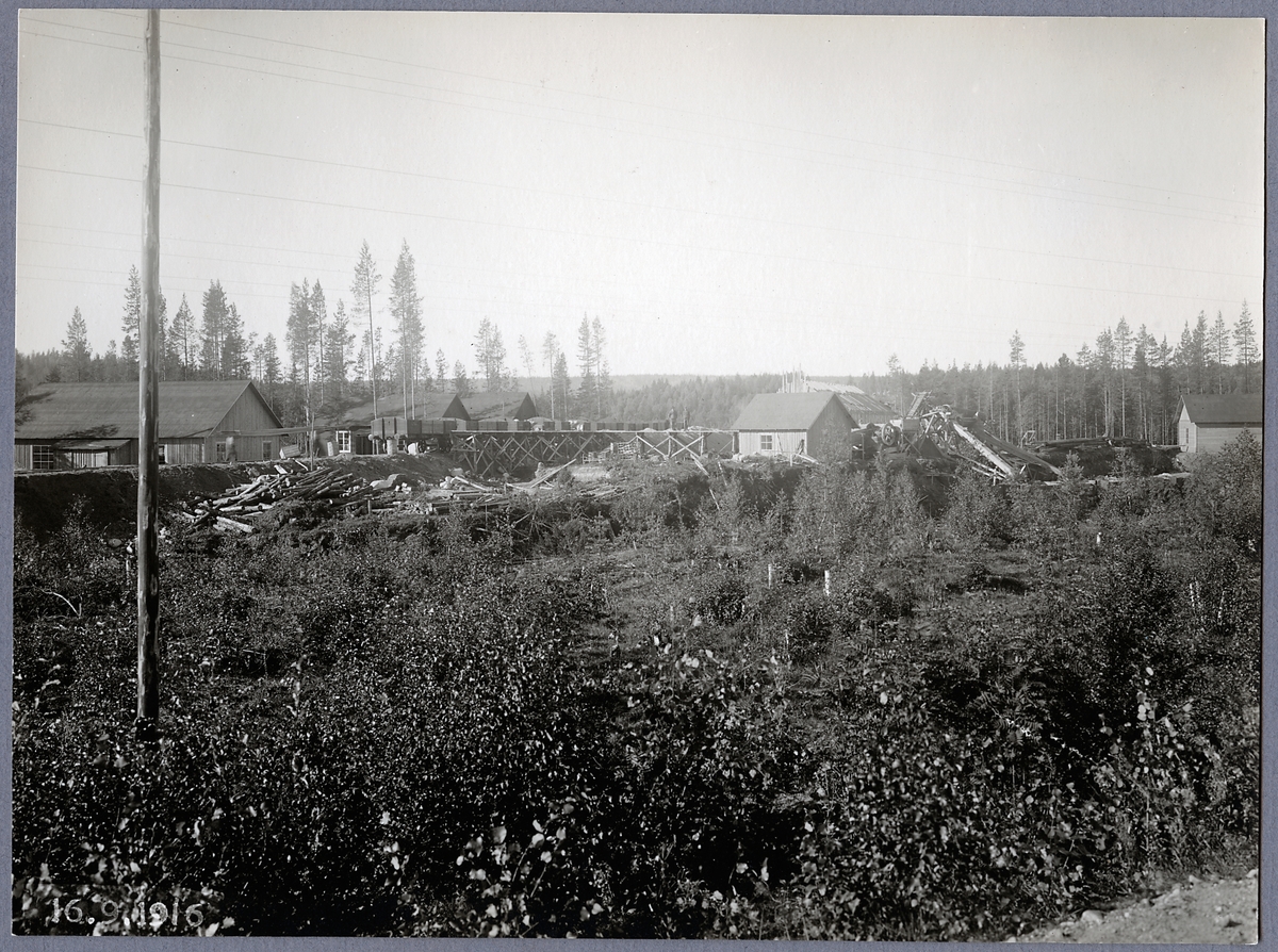 Baracksamhället på östra stranden samt stenkrossuppställningen vid Öreälven.