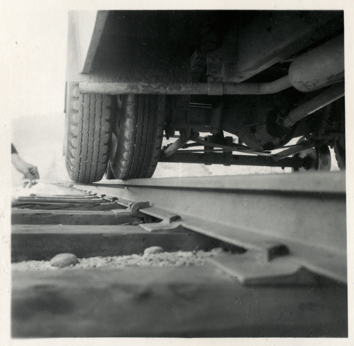 Volvo räls- och landsvägsbuss vid flänssmörjapparat.