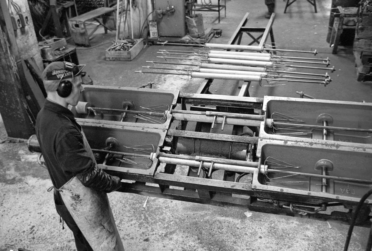 Tillverkning av betongsliper. A-Betong, Vislanda