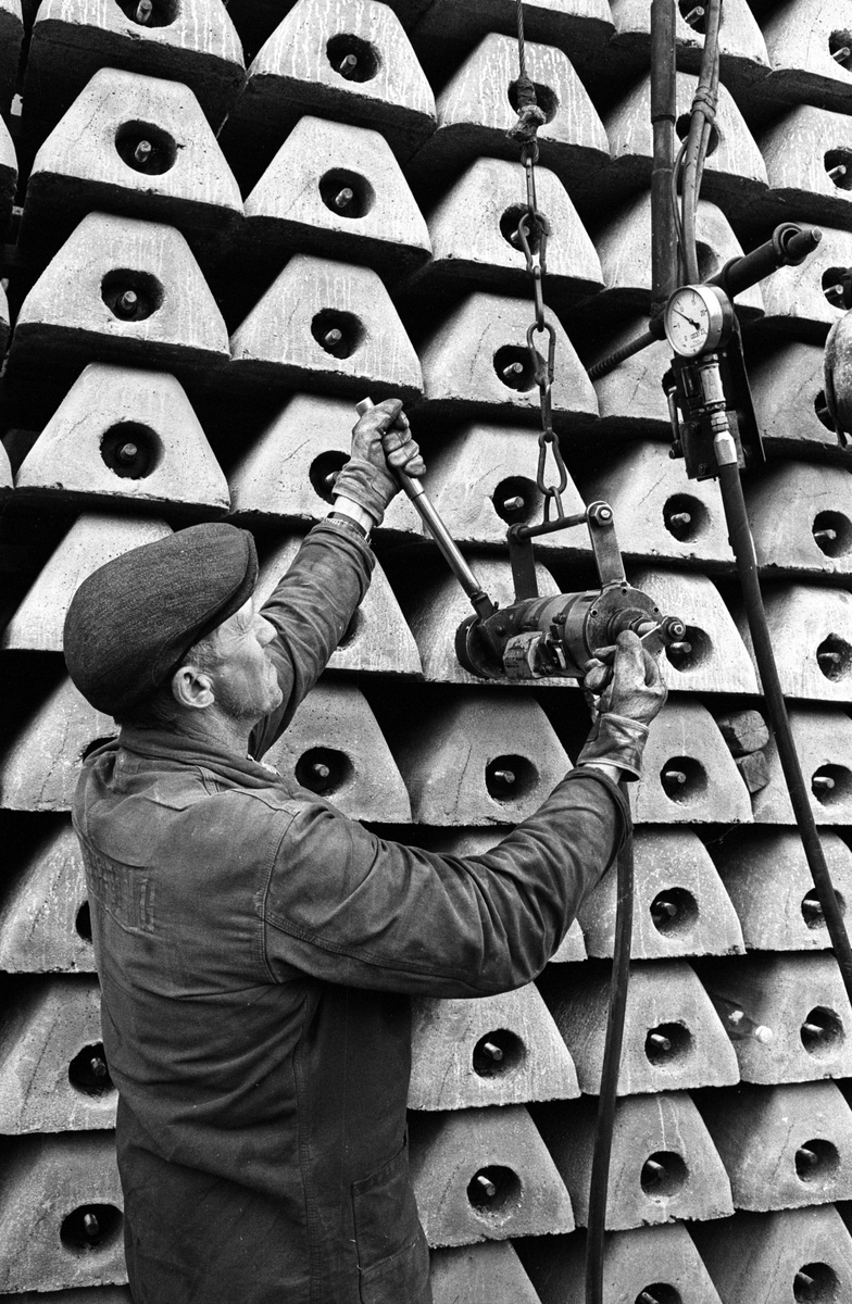 Tillverkning av betongsliper. A-Betong, Vislanda
