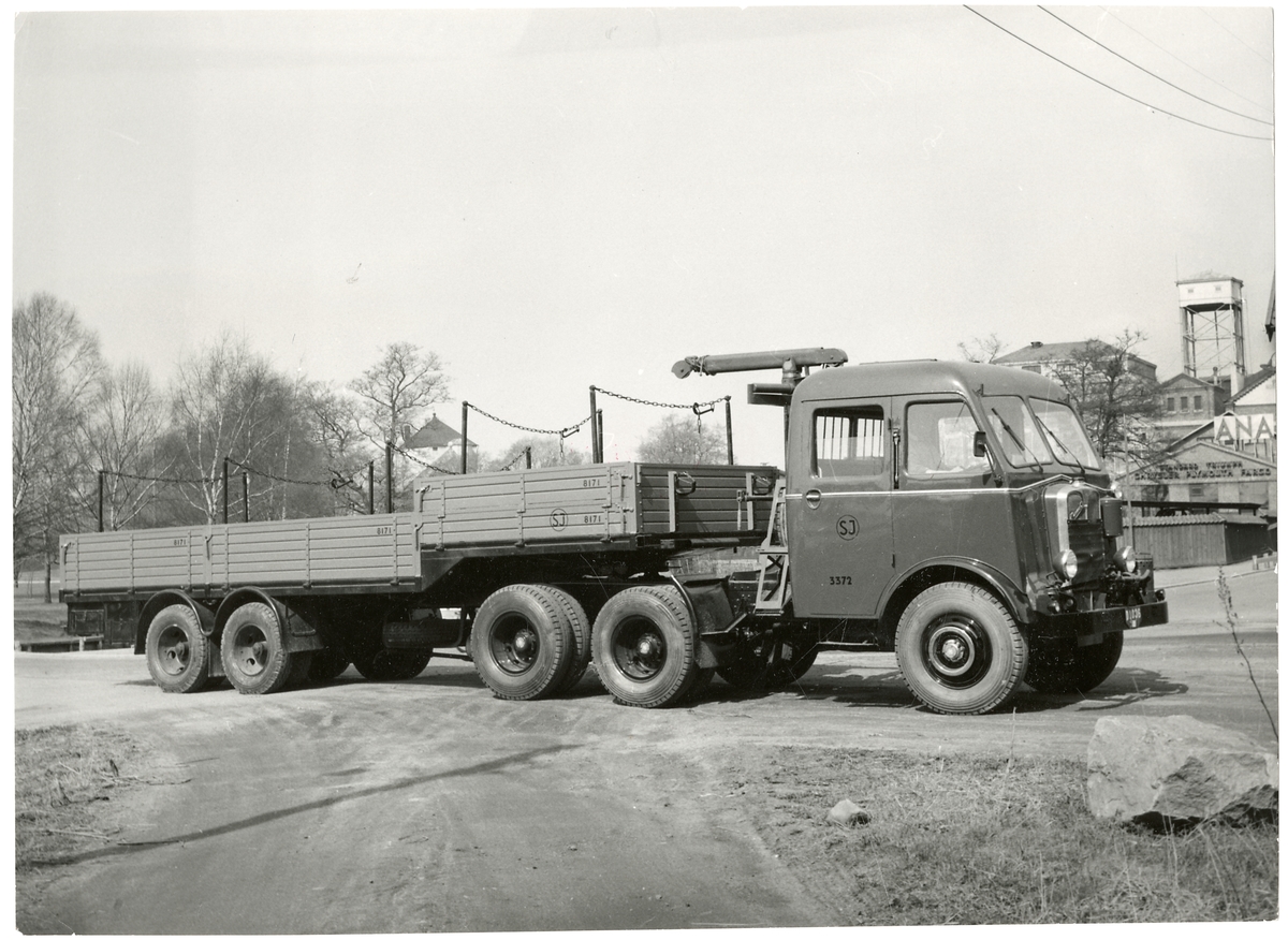 Statens Järnvägar, SJ Lastbil 3372 med trailer 8171. AEC Mammoth Major 6 Mk III med trailer.