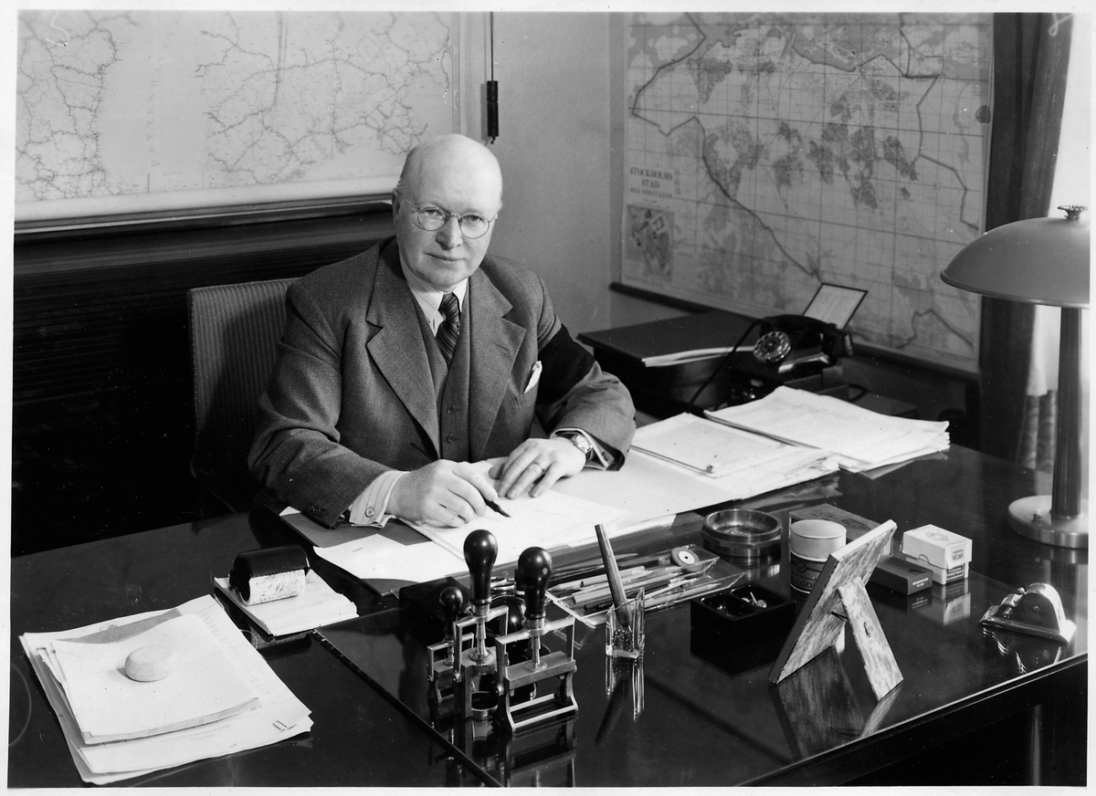 Statens Järnvägar, SJ personal, Personaltaxbyrån, byråchef R. Lundqvist på sitt tjänsterum.