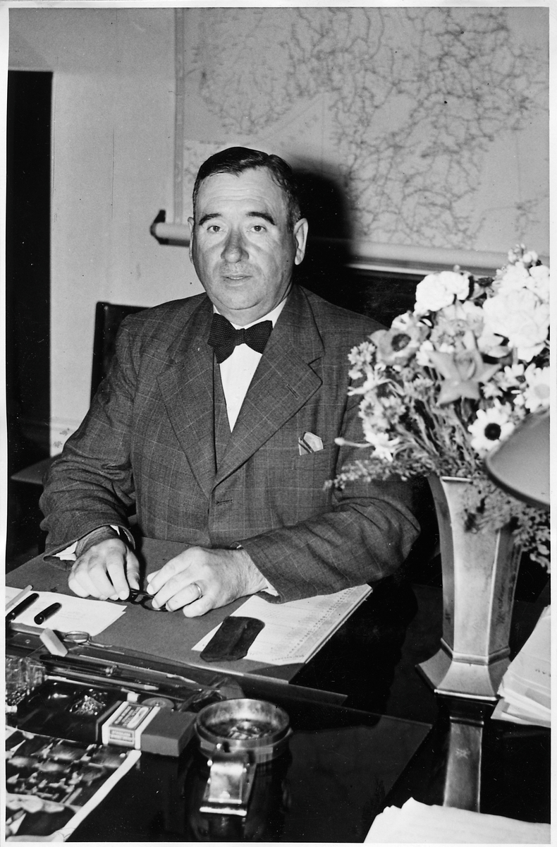 Statens Järnvägar, SJ personal, Personaltaxebyrån, byråchef M. Blomberg på sitt tjänsterum.