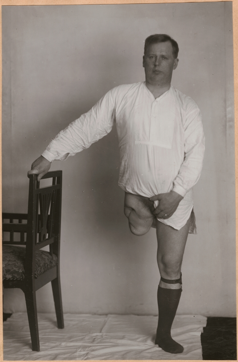 Man med lårbensamputering.