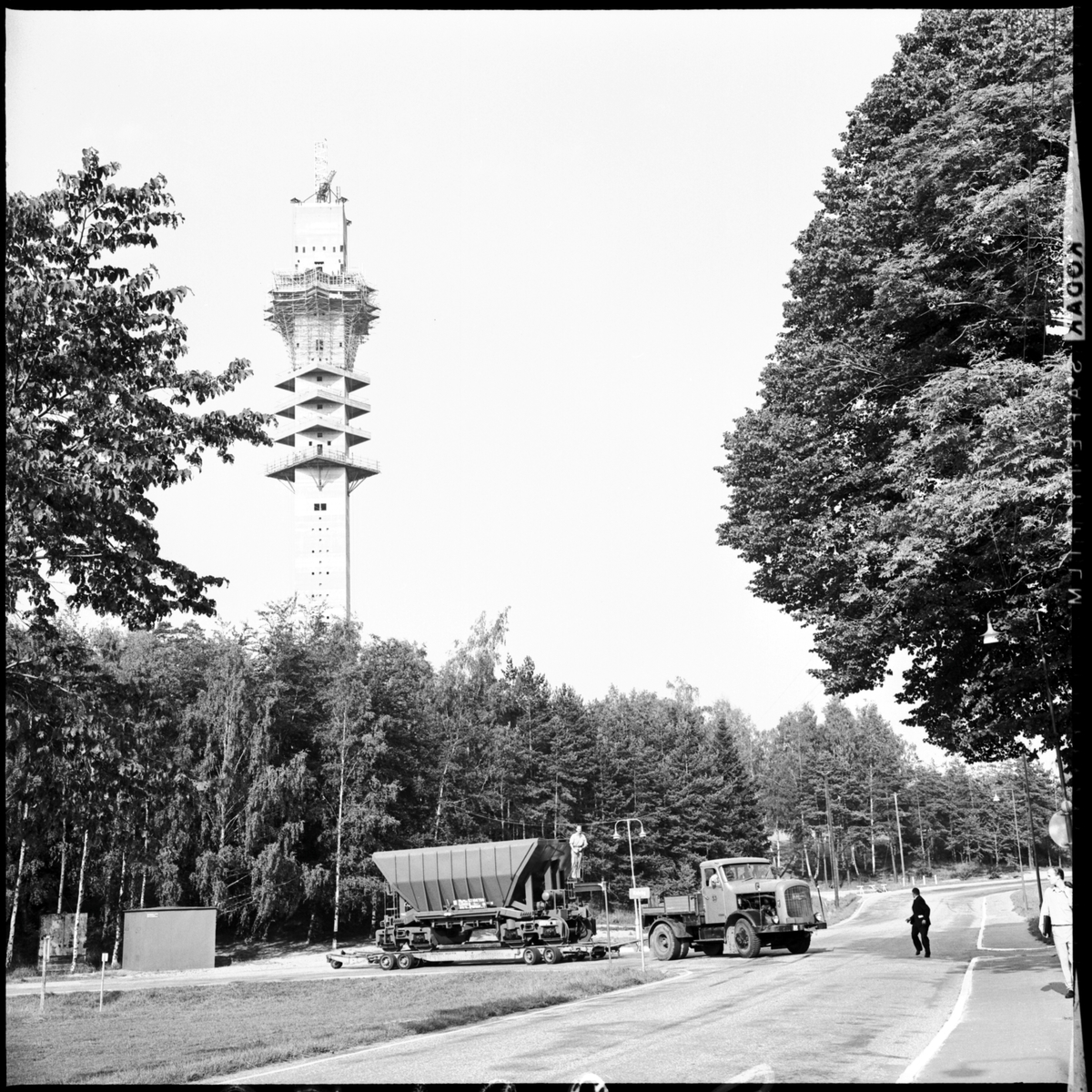 Kaknästornet. Statens Järnvägar SJ Mb, malmvagn upplastad på en Vagnbjörn.