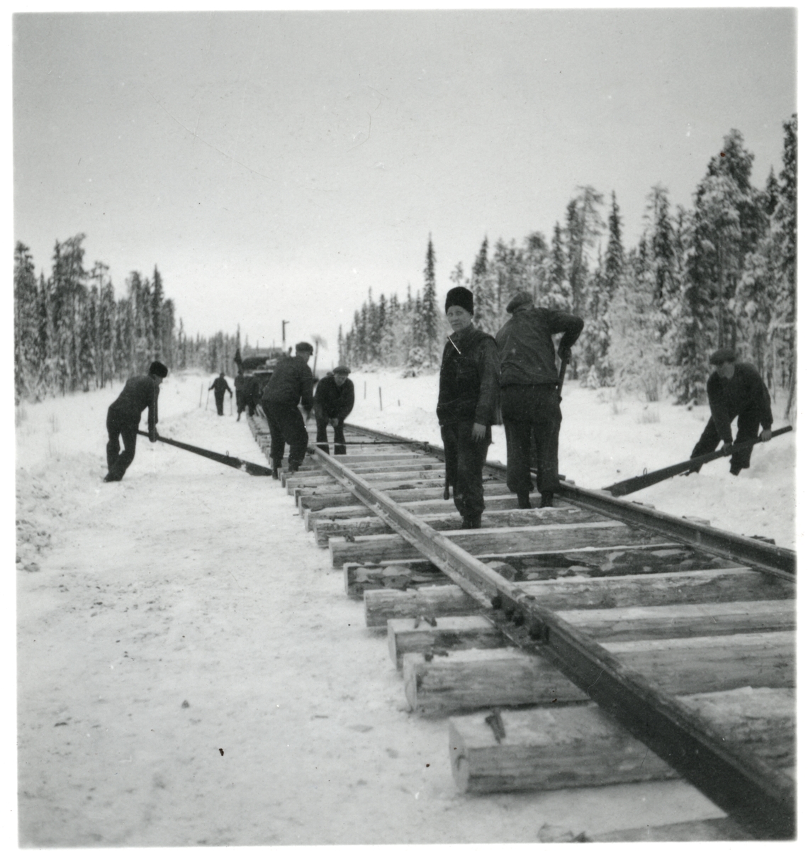 Titel: Banbyggnad Inlandsbanan. Rälsläggning vid Jokkmokk.