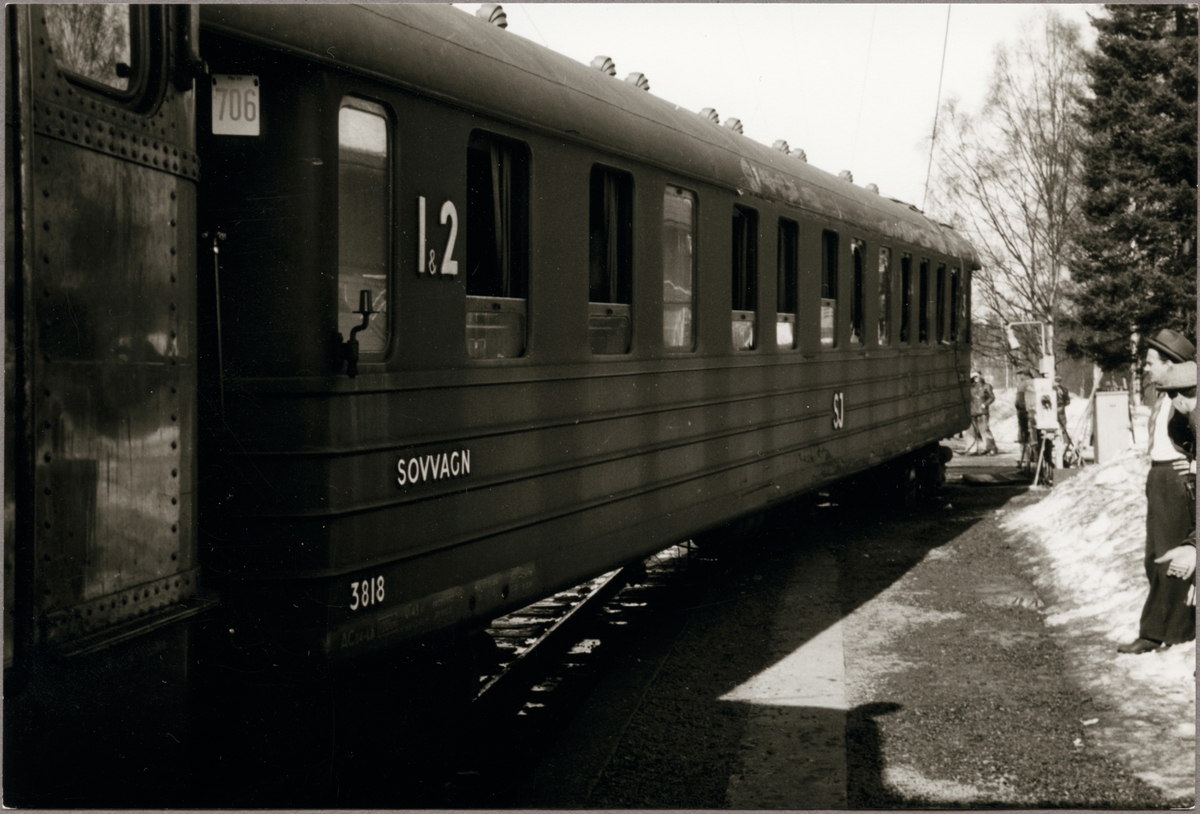 Urspårad sovvagn i Granbo. Statens Järnvägar, SJ ACo4 3818.