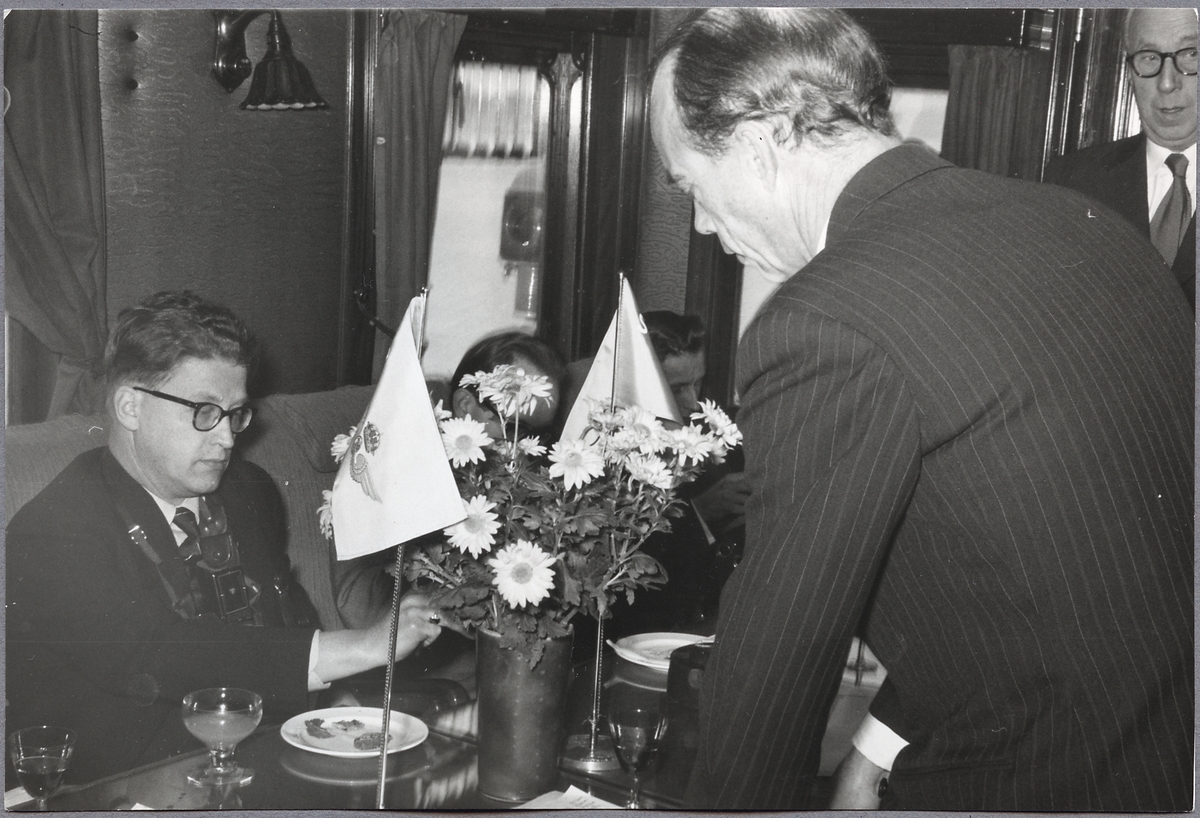 Journalister i restaurangvagnen på Första eltåget på linjen mellan Söderhamn - Hudiksvall.