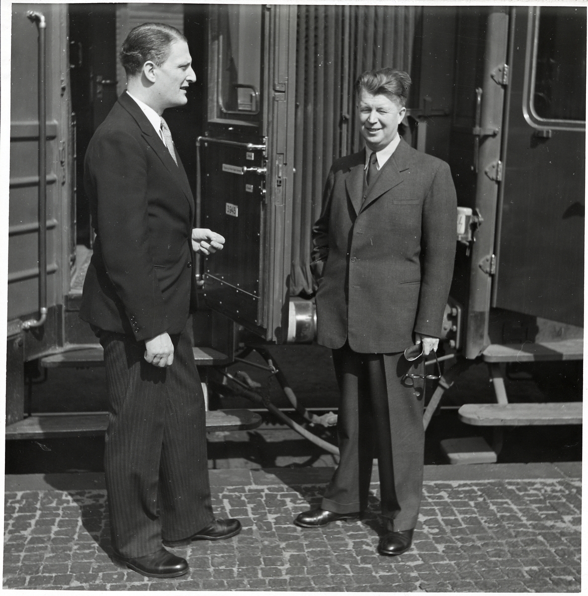 Titel: Generaldirektör Erik Upmark och Landshövding Per Nyström någonstans efter linjen.