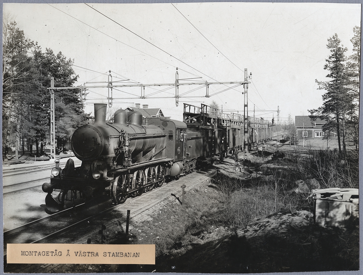 Montagetåg på linjen mellan Stockholm - Göteborg, västra Stambanan. Statens Järnvägar, SJ E 934.