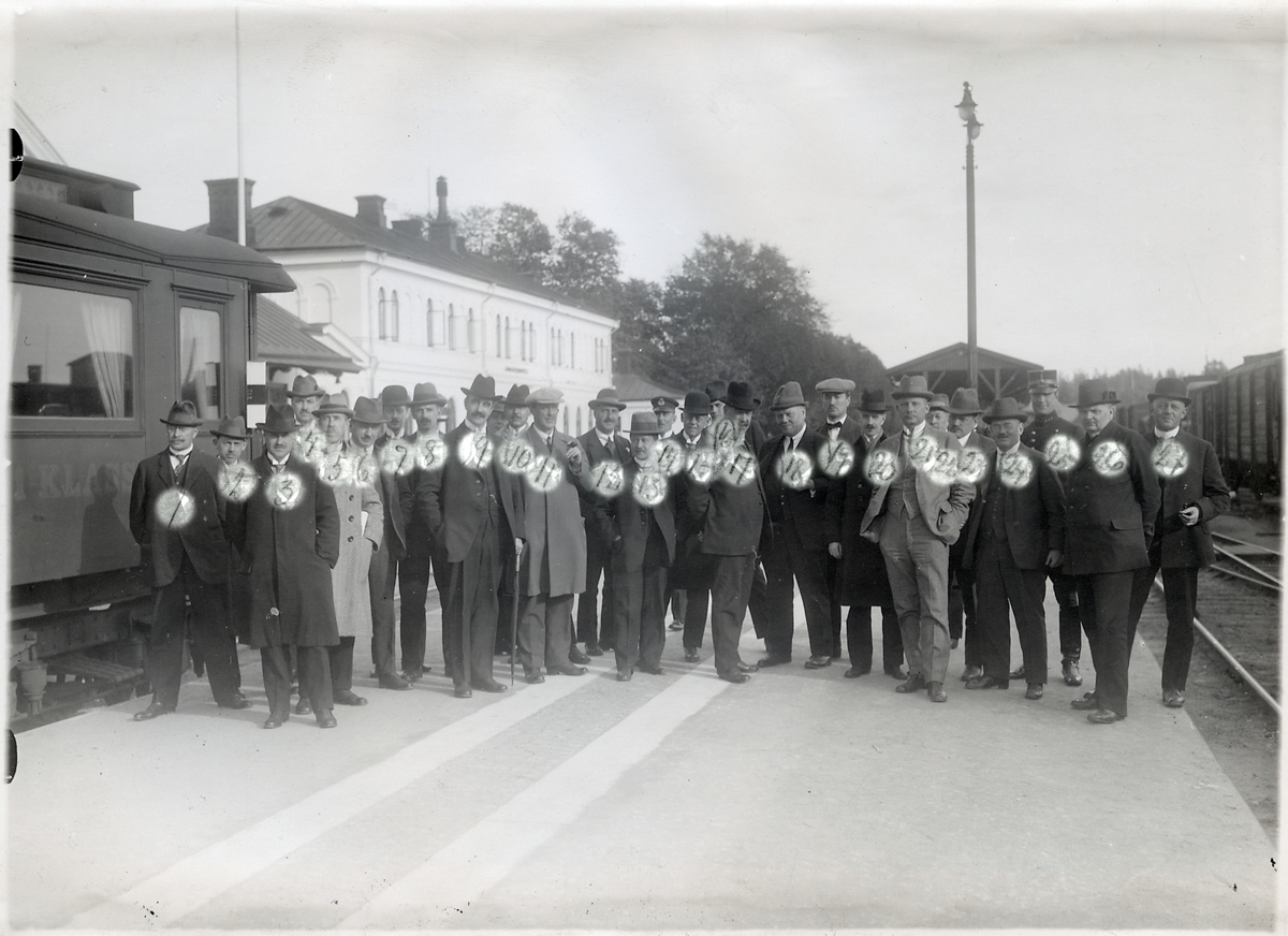 Titel: Personal vid resa för blivande elektrifiering av bandriften Stockholm - Göteborg.