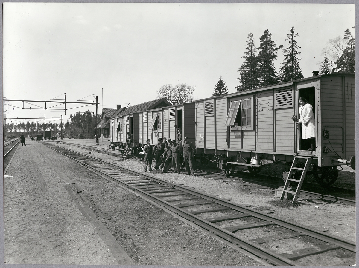 Arbete mellan Järna - Norrköping, bostadsvagn och kokvagn. Kokvagn Statens Järnvägar, SJ Efd. nr 222.