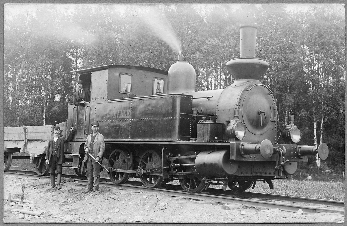 Lok "Kalle". Detta anläggningslok användes vid bygget av Varberg -Ätrans Järnväg. Här på linjen mellan Varberg och Ätran.