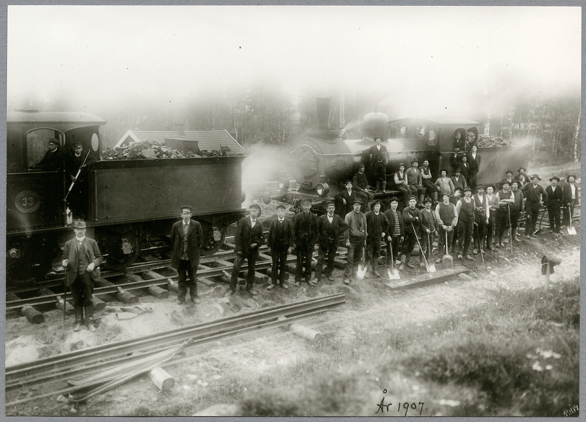 Rallarelag ute på arbete åt Västra Centralbanan. Halmstad - Nässjö Järnväg, HNJ G 33, HNJ G 34.