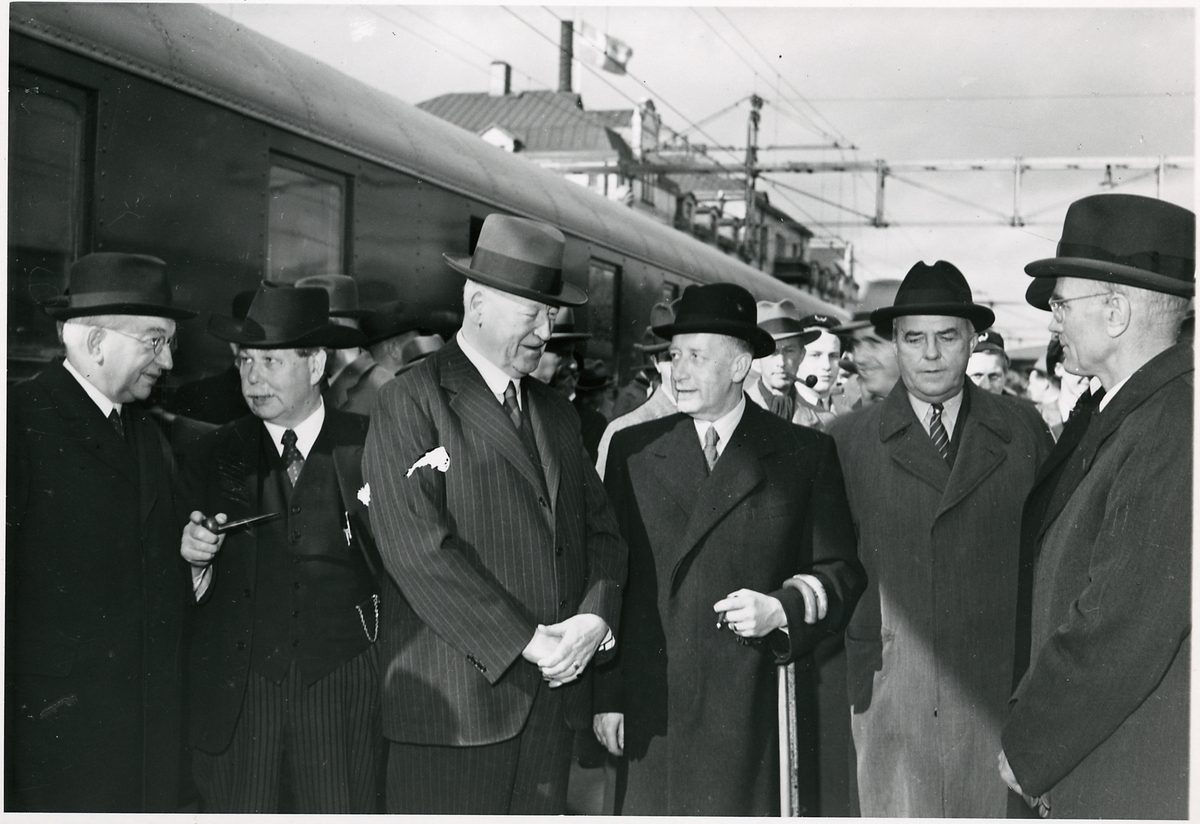 Titel: Gustav VI Adolf på invigningen för elektrifieringen av linjen mellan Gävle-Falun 1943-10-01.