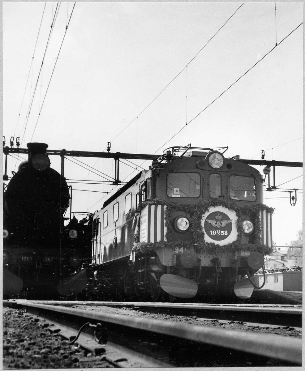 Ånglok SJ B 1367 och ellok SJ Da 941 vid Härnösand station i samband med invigningen av eldriften på sträckan Härnösand - Sollefteå - Långsele.