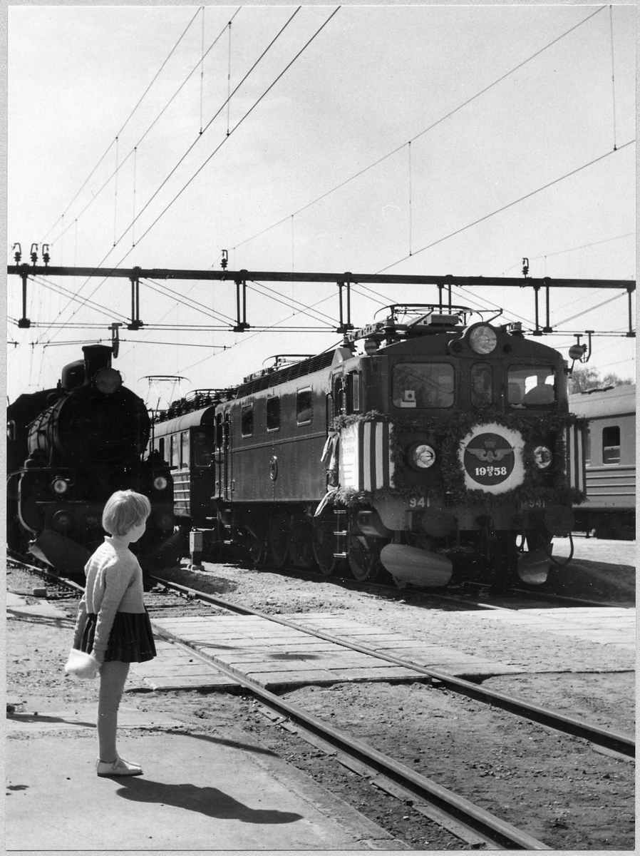 Ånglok SJ B 1367 och ellok SJ Da 941 vid Härnösand station i samband med invigningen av eldriften på sträckan Härnösand - Sollefteå - Långsele.