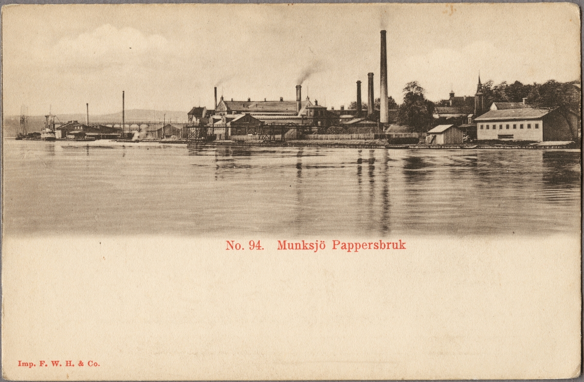 Munksjö Pappersbruk vid Munksjöns strand i Jönköping som 1862 blev starten för den världsomspännande Munksjökoncernen.