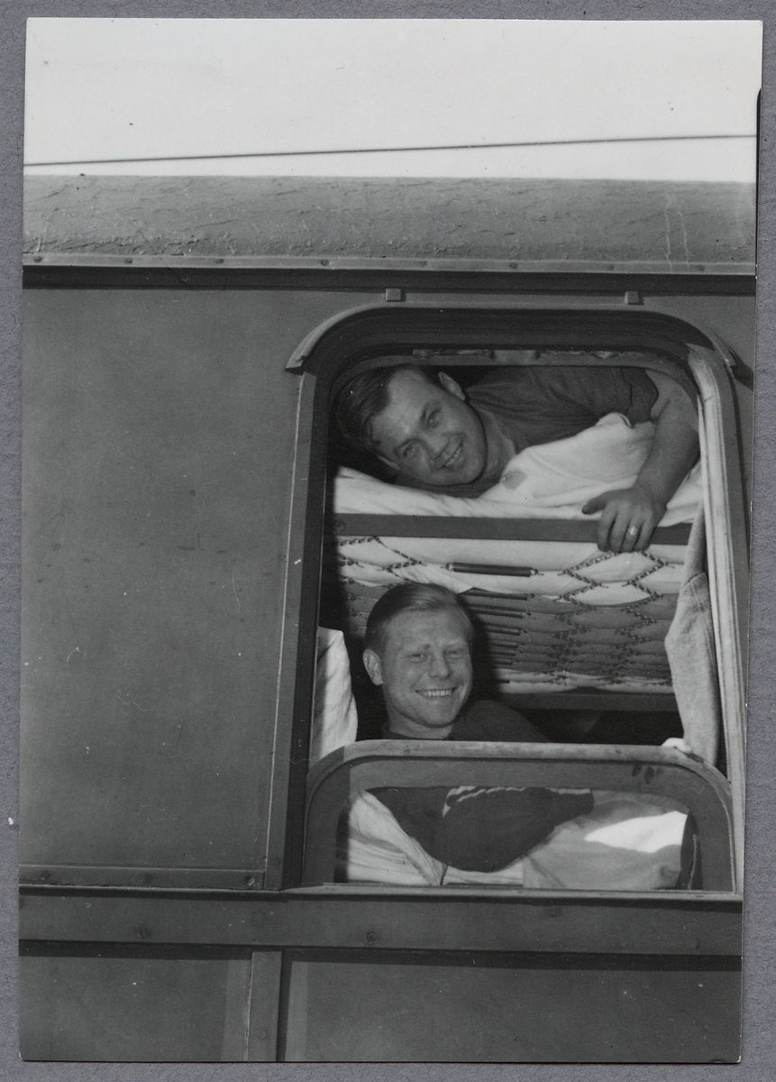 Skadade tyska soldater ombord på tåg i Hallsberg under Andra Världskriget.