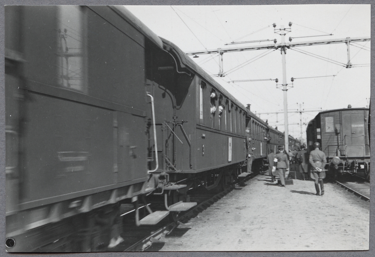 Tyskt sjukvårdståg på stationen i Hallsberg under Andra Världskriget.